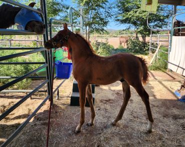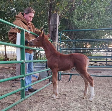 To Sara and Byron Light on their 2025 foal by Indubitably and out of Foxton Goldessa. They have named him Audaciaz Starman. "Ziggy" is a National Morgan Reining Horse Sire/Dam foal and is Derby eligible.